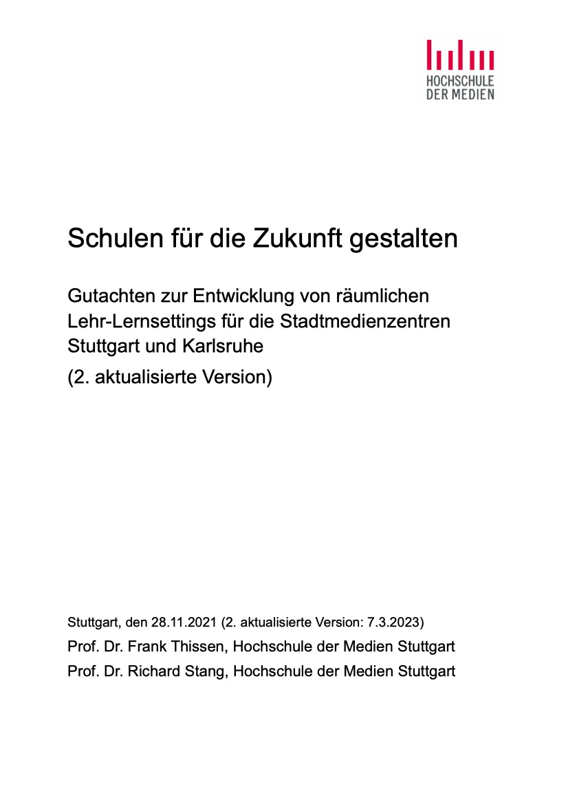 Mit meinem Kollegen Prof. Dr. Richard Stang zusammen habe ich für die Stadtmedienzentren Stuttgart und Karlsruhe ein Gutachten zur Entwicklung von räumlichen Lehr-Lernsettings in Schulen geschrieben.
